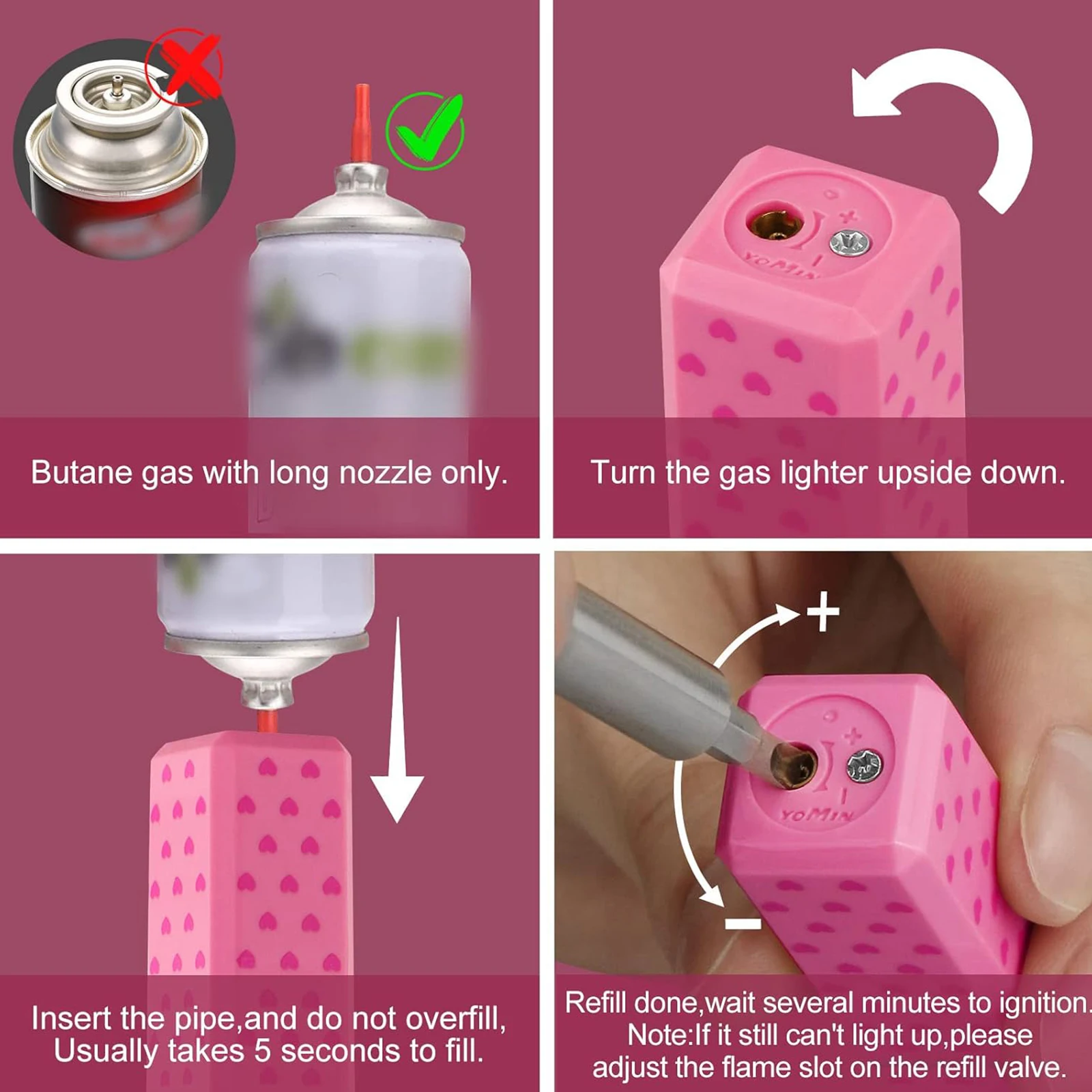 🔥【Easy Butane Refillable】Utilizing a convenient butane refill method for simple and easy use. just upside down the hello lighter and insert the butane nozzle for few seconds, then you can get a lighter full of gas.you can go to the supermarket or convenience store to buy butane gas inflatable for use.