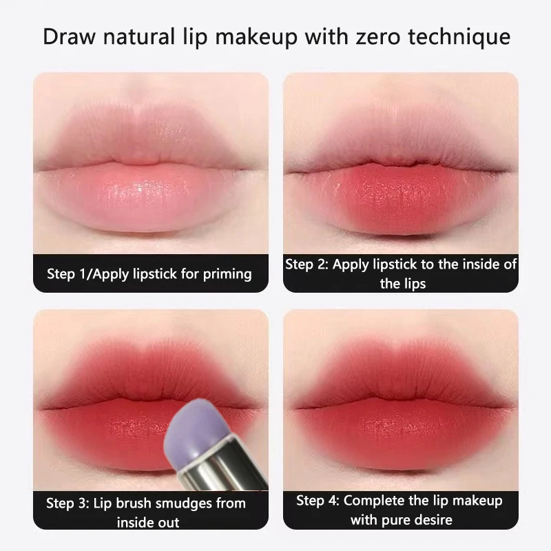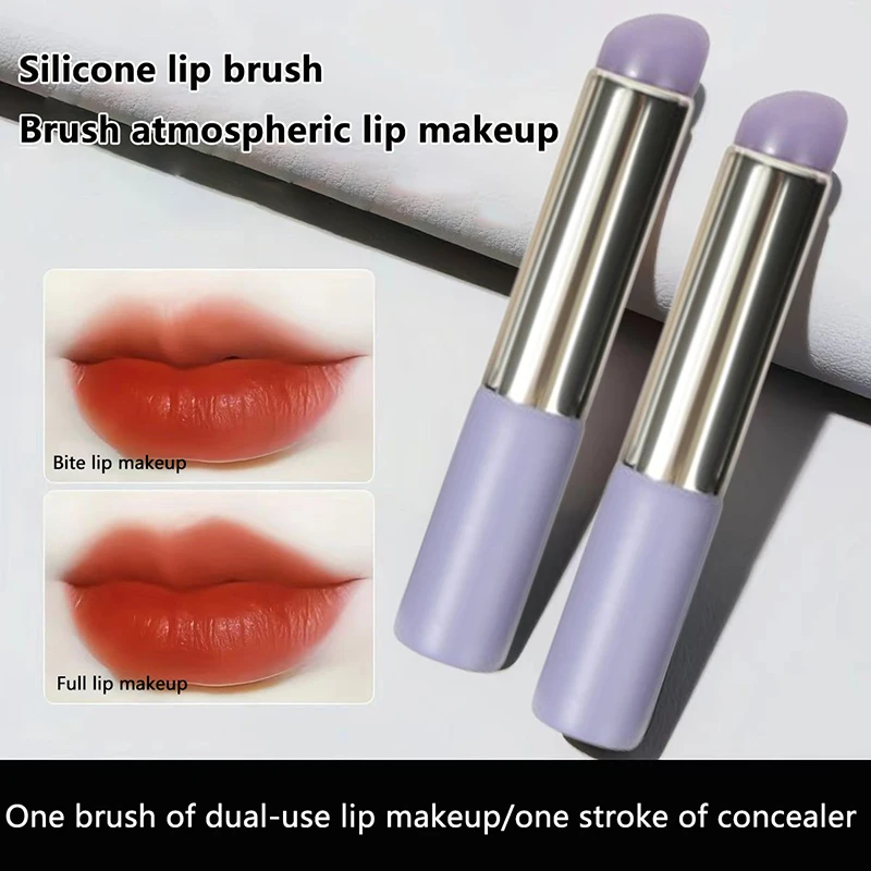 New Purple Silicone Lip Brush With Cover Angled Concealer Brush Lipstick Application Smudge Balm Lip Make Up Brush Cosmetic Tool